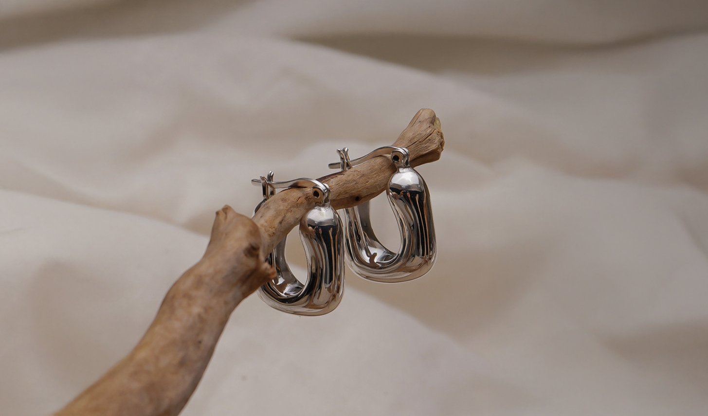 Aretes Geométricos con flecos de metal dorado
